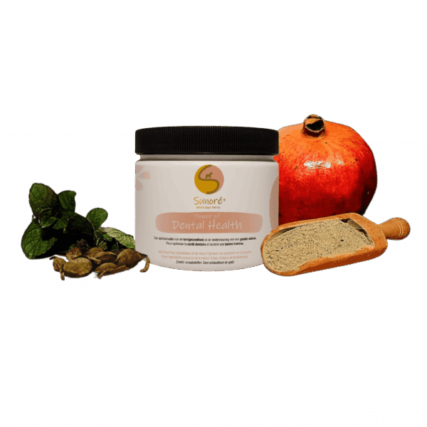 Maar… veel mensen vinden tanden poetsen lastig of weten niet goed hoe. Of sommigen weten niet welke tandpasta kiezen omdat er veel synthetische stoffen worden toegevoegd aan tandpasta’s, sommigen vertellen me dat hun hond dit helemaal niet fijn vindt.  Daarom maakte ik een poeder dat werkt, ook als je het gewoon over het eten geeft.