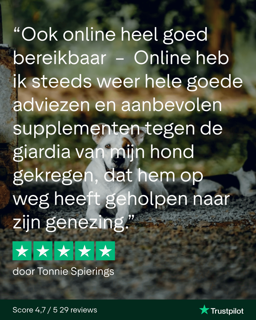 Medische disclaimer: Voedersupplement. Niet bedoeld om ziekten te diagnosticeren, te behandelen of te genezen. Bij klachten advies van je dierenarts. Dit product is geen geneesmiddel.