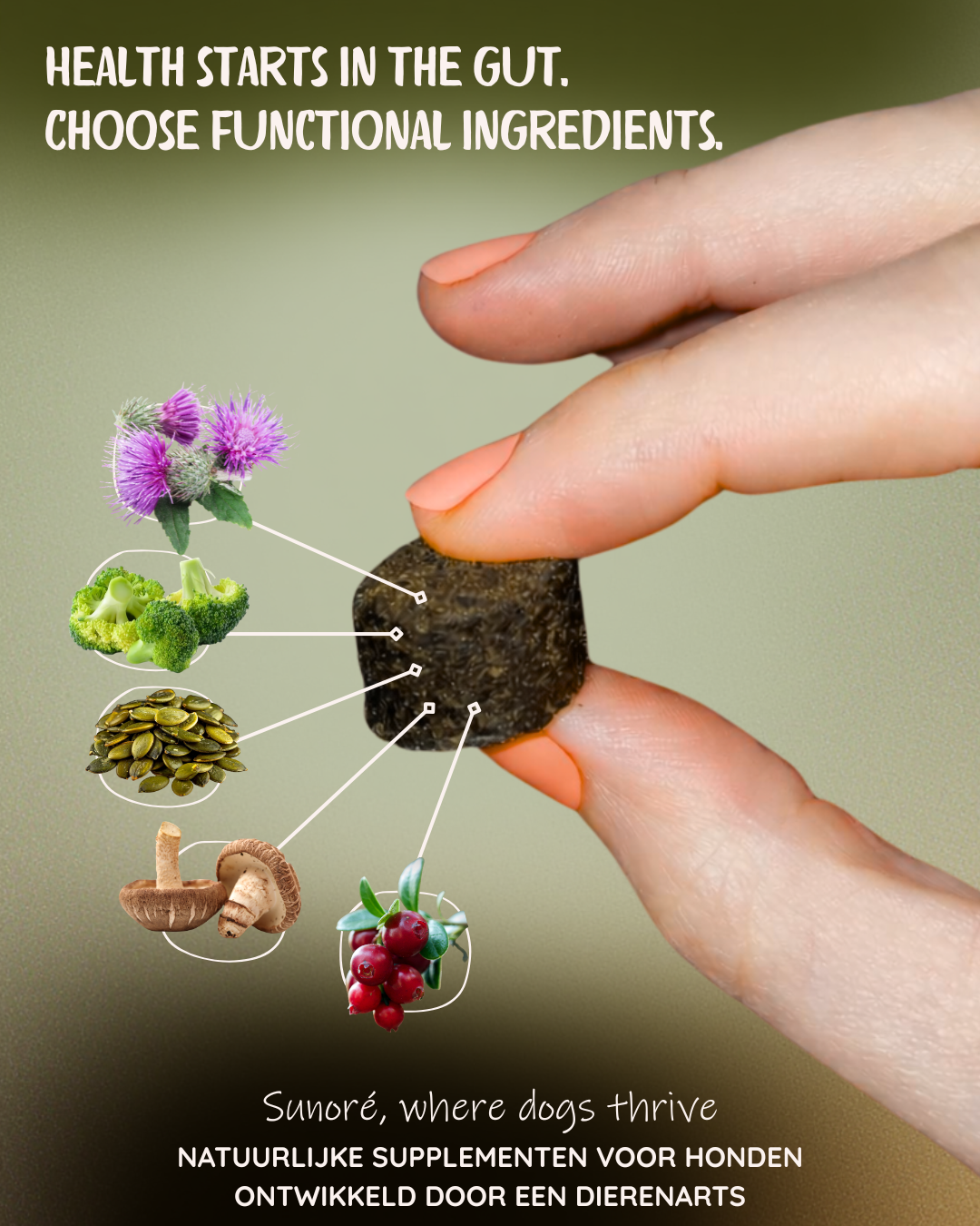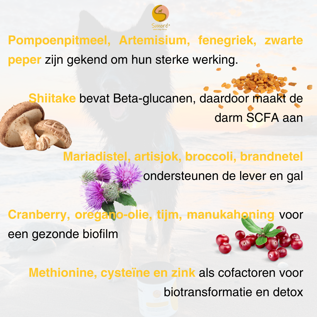 ondersteuning bij leaky gut en bij ziekten zoals allergie, diarree, stress,... én voor gezonde honden